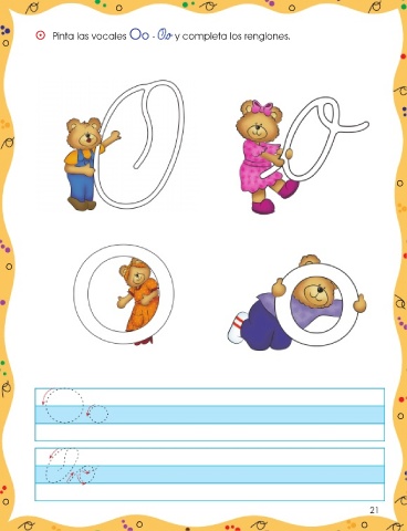 o o o ⵙ Pinta las vocales Oo - Oo y completa los renglones. o o o o 21 o o