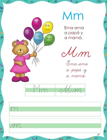 m p Mm m ma ma me me Ema ama mi a papá y mi mo mo mu a mamá. mu m Ema ama p a papá y a mamá. p m 29 p m