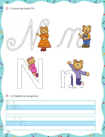 s l ⵙ Colorea las letras Nn. s s l ⵙ Completa los renglones. l s 34 l s