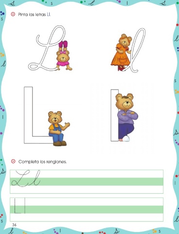 s l ⵙ Pinta las letras Ll. s s l ⵙ Completa los renglones. l s 36 l s