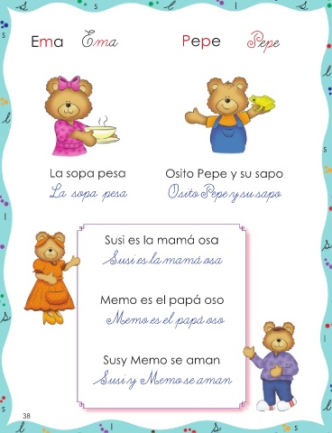 s l s Ema Ema Pepe Pepe s La sopa pesa Osito Pepe y su sapo La sopa pesa Osito Pepe y su sapo l Susi es la mamá osa Susi es la mamá osa Memo es el papá oso Memo es el papá oso l Susy Memo se aman Susi y Memo se aman s 38 l s