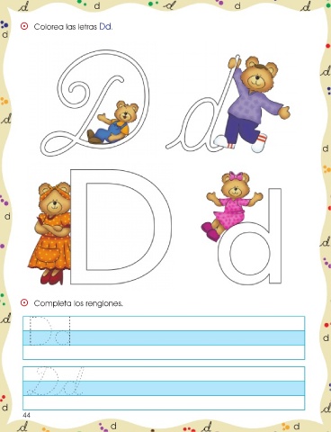 d d ⵙ Colorea las letras Dd. d d d ⵙ Completa los renglones. d d 44 d d