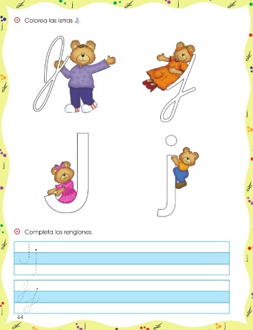 j j ⵙ Colorea las letras Jj. j j j ⵙ Completa los renglones. j j 64 j j