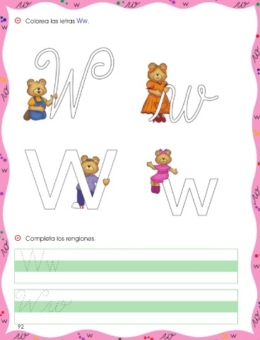 w w ⵙ Colorea las letras Ww. w w w ⵙ Completa los renglones. w w 92 w w