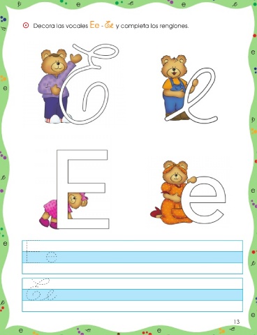 e e ⵙ Decora las vocales Ee - Ee y completa los renglones. e e e e e 13 e e