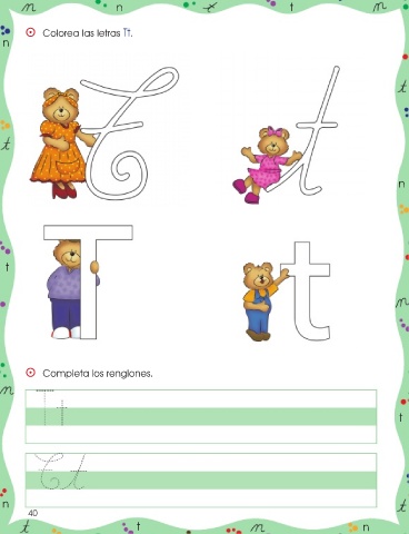 n t ⵙ Colorea las letras Tt. n n t ⵙ Completa los renglones. t n 40 t n