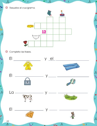 r r ⵙ Resuelve el crucigrama. r 12 r ⵙ Completa las frases. El y el r El y La y r El y r 62 r r