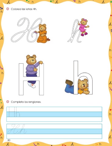 h h ⵙ Colorea las letras Hh. h h h ⵙ Completa los renglones. h h 80 h h