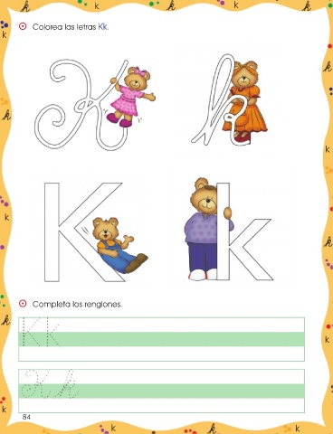 k k ⵙ Colorea las letras Kk. k k k ⵙ Completa los renglones. k k 84 k k
